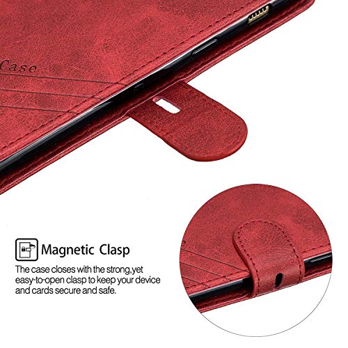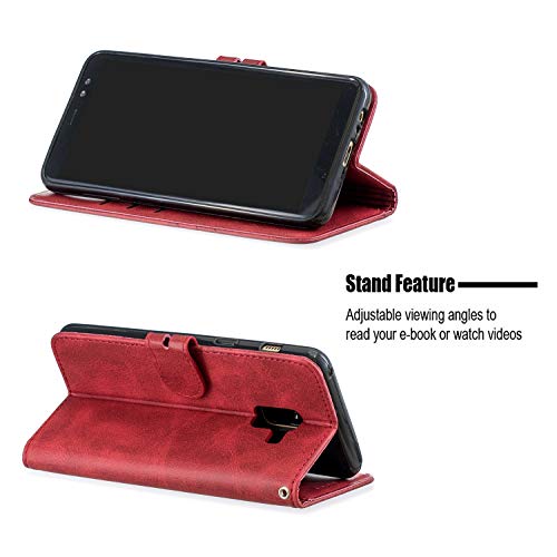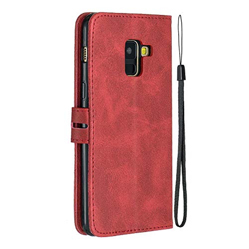 MRSTER Cover per Samsung Galaxy A8 2018, Semplice ed Elegante Book Style Internamente Silicone TPU Case Flip Cover in Pelle PU Premium Custodia per Samsung Galaxy A8 2018. Retro Red