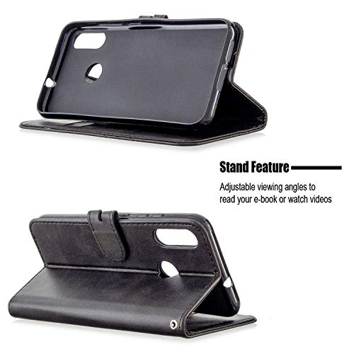 MRSTER Cover per Moto E6 Plus, Semplice ed Elegante Book Style Internamente Silicone TPU Case Flip Cover in Pelle PU Premium Custodia per Motorola Moto E6 Plus. Retro Black