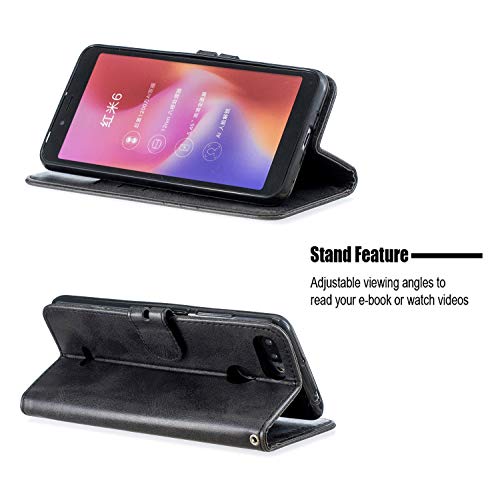 MRSTER Cover per Xiaomi Redmi 6A, Semplice ed Elegante Book Style Internamente Silicone TPU Case Flip Cover in Pelle PU Premium Custodia per Xiaomi Redmi 6A. Retro Black