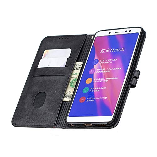 MRSTER Cover per Xiaomi Redmi Note 5, Semplice ed Elegante Book Style Internamente Silicone TPU Case Flip Cover in Pelle PU Premium Custodia per Xiaomi Redmi Note 5. Retro Black