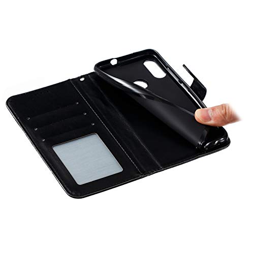 MRSTER Moto E6 Plus Custodia Flip, Goffratura Design Case in PU Pelle Internamente Silicone TPU Cover Portafoglio Cover Premium Custodia per Motorola Moto E6 Plus. LD Mandala Black