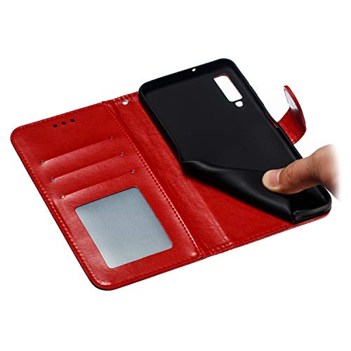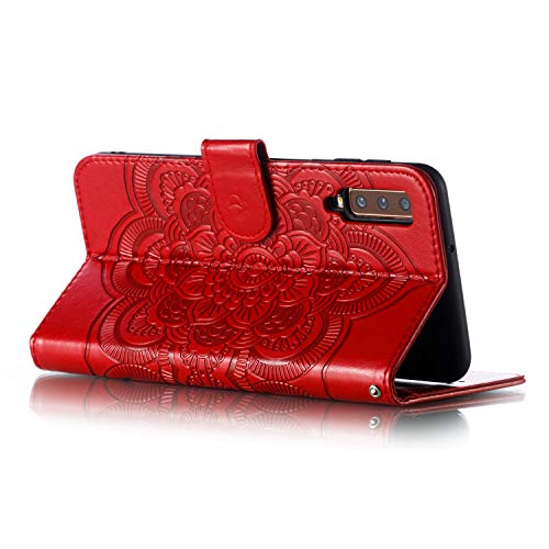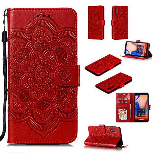 MRSTER Custodia in pelle premium per Samsung Galaxy A7 2018, [supporto supporto] [chiusura magnetica] a portafoglio per Samsung Galaxy A7 2018. LD Mandala rosso
