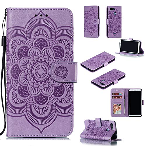 MRSTER Custodia in pelle premium per Xiaomi Redmi 6A, [supporto per carte di credito] [chiusura magnetica] Portafoglio Custodia per Xiaomi Redmi 6A. LD Mandala Viola