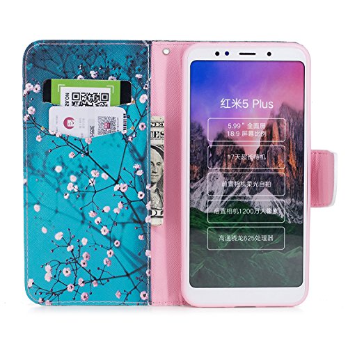 MRSTER Custodia per Xiaomi Redmi 5 Plus, Custodia in Pelle Xiaomi Redmi 5 Plus, Custodia Flip Premium Protettiva Portafoglio PU Pelle Case Cover per Xiaomi Redmi 5 Plus. BF Apricot Tree