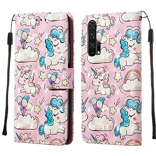 MRSTER Honor 20 PRO Custodia, 3D Moda Custodia Flip Premium Protettiva Portafoglio PU Pelle Phone Case Cover per Huawei Honor 20 PRO. YB Balloon Unicorn