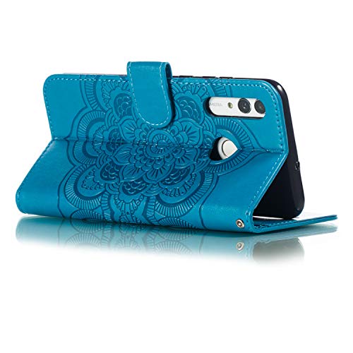 MRSTER Huawei P Smart+ 2019 Custodia Flip, Goffratura Design Case in PU Pelle Internamente Silicone TPU Cover Portafoglio Cover Premium Custodia per Huawei Honor 20 Lite. LD Mandala Blue
