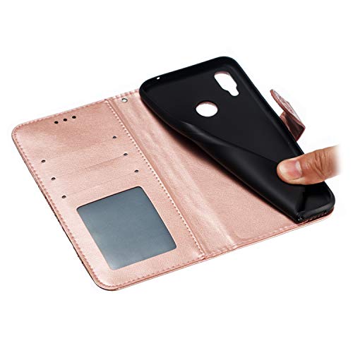 MRSTER Huawei P Smart+ Custodia Flip, Goffratura Design Case in PU Pelle Internamente Silicone TPU Cover Portafoglio Cover Premium Custodia per Huawei P Smart Plus 2018. LD Mandala Rose Gold