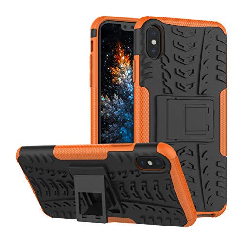 MRSTER iPhone X Custodia, [Heavy Duty Protezione] [Dual Layer] Difficile Silicone Kickstand Ibrida Shock Proof Cover Custodia Compatibile Apple iPhone X/iPhone XS 5.8". Hyun Orange