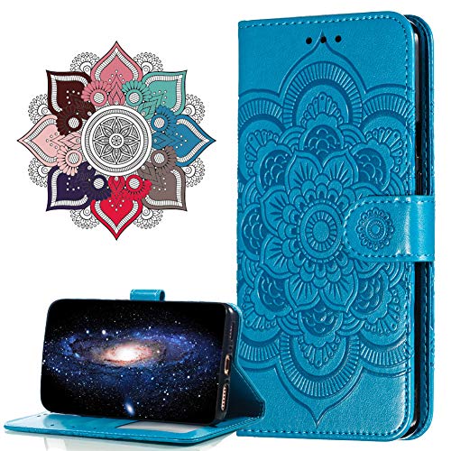 MRSTER Samsung Galaxy A6 2018 Custodia Flip, Goffratura Design Case in PU Pelle Internamente Silicone TPU Cover Portafoglio Cover Premium Custodia per Samsung Galaxy A6 2018. LD Mandala Blue