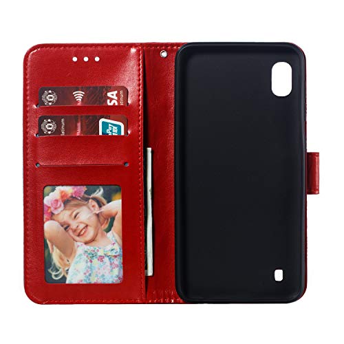 MRSTER Samsung Galaxy A10 Custodia Flip, Goffratura Design Case in PU Pelle Internamente Silicone TPU Cover Portafoglio Cover Premium Custodia per Samsung Galaxy A10. LD Mandala Red