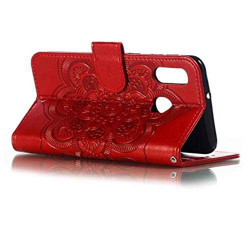 MRSTER Samsung Galaxy A20e Custodia Flip, Goffratura Design Case in PU Pelle Internamente Silicone TPU Cover Portafoglio Cover Premium Custodia per Samsung Galaxy A20e. LD Mandala Red