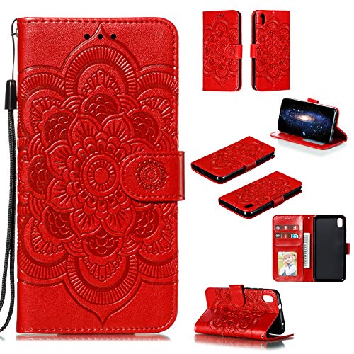 MRSTER Xiaomi Redmi 7A Custodia Flip, Goffratura Design Case in PU Pelle Internamente Silicone TPU Cover Portafoglio Cover Premium Custodia per Xiaomi Redmi 7A. LD Mandala Red