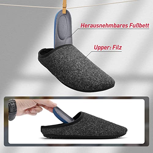 MrToNo Pantofole Uomo Donna Comode Antiscivolo Ciabatte Da Casa In Feltro,Pantofole a Collo Basso Unisex-Adulto Nero Grigio 43/44