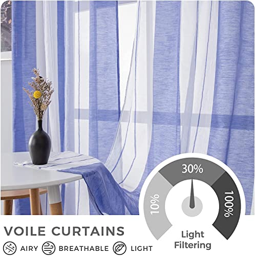 MRTREES 2 Pezzi Tende Soggiorno a Righe Semi Trasparente per Cameretta Bambini Tende Voile Camera da Letto con Occhielli per Interni Leggera Elegante Moderna Bianco+Blu 140x280 CM