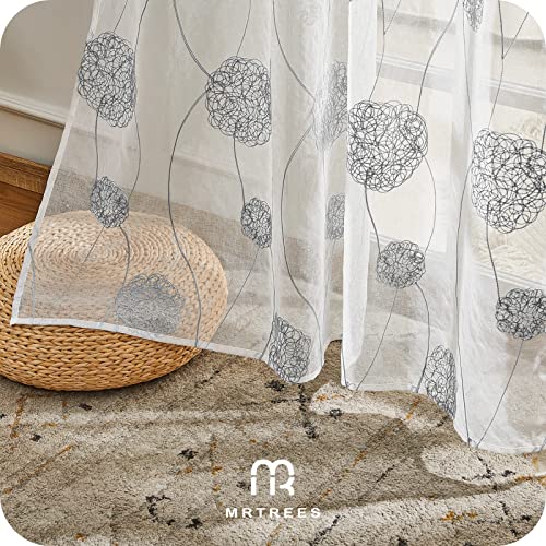 MRTREES 2 Pezzi Voile Tende Trasparente Ricamo con Occhielli per Camera da Letto Flora Grigio 140x145 CM Tenda a Pannello Leggera Corta Soggiorno per Salotto Interni Moderna Cucina