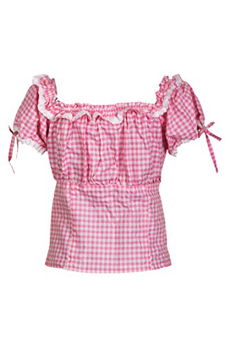 MS-Trachten Camicetta da donna bavarese Carmenbluse Rose-Bianco a quadretti
