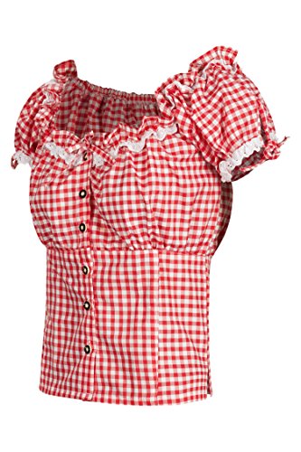 MS-Trachten Donna Tradizionale Camicetta Carmen Camicia Camicetta (32, Rosso)