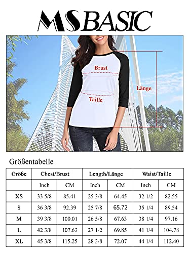 MSBASIC Maglietta a maniche lunghe da baseball Raglan a 3/4, girocollo, a maniche lunghe, bianco-nero, XL