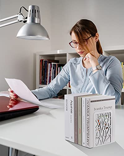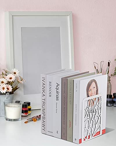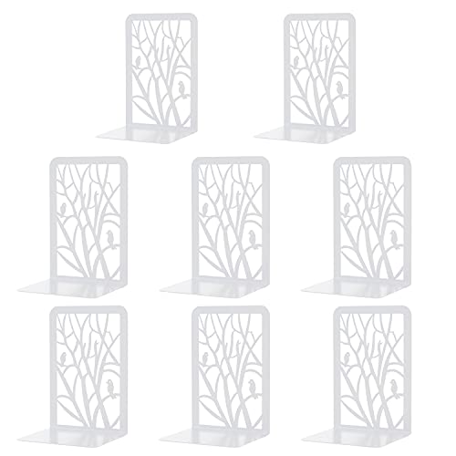 MSDADA -Fermalibri, 4 Paia Fermalibri in Metallo, Ufficio in Reggilibri, Fermalibri da Mensole, Fermalibri di Design a Forma di Albero,per Casa, Biblioteca, Scuola, Studenti Regalo (Bianco)
