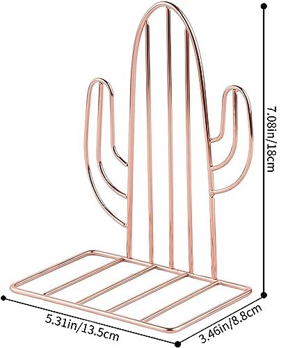 MSDADA -Fermalibri, Fermalibri in Metallo, Ufficio in Reggilibri, Fermalibri da Mensole, Fermalibri di Design a Forma di Cactus, per Casa, Biblioteca, Scuola, Studenti Regalo, 1 Paia (Oro Rosa)