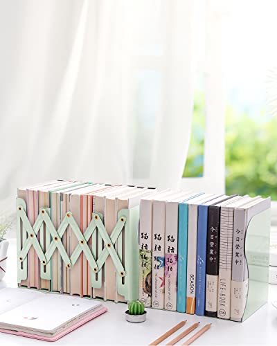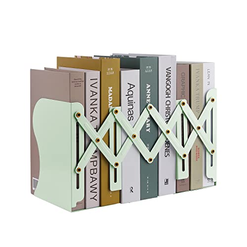 MSDADA Fermalibri Regolabile in Espandibile, Fermalibri in Metallo, Antiscivolo,Retrattile, per Libri, Scrivania,Scuola, Riviste, per Ufficio, Scuola, Biblioteca (Macaron Verde)