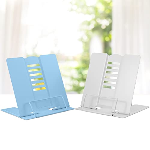 MSDADA Multifunzione Leggio Libri, 2 Pezzi Regolabile Supporti per Libri,6 Altezze Regolabile Metallo Book Stand per Libri, cuochi, Ricette, iPad,Musicale,Tablet (Azzurro+Bianco)