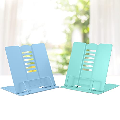 MSDADA Multifunzione Leggio Libri, 2 Pezzi Regolabile Supporti per Libri,6 Altezze Regolabile Metallo Book Stand per Libri, cuochi, Ricette, iPad,Musicale,Tablet (Azzurro+Verde Chiaro)