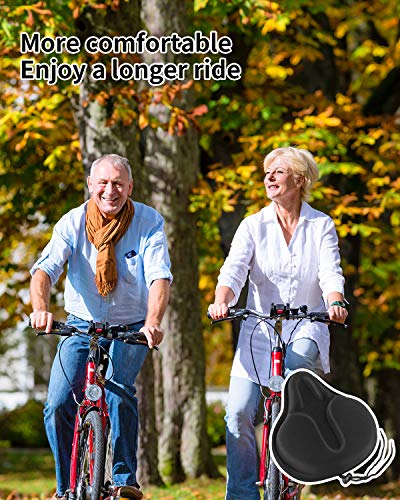 MSDADA Sella per Bicicletta in Gel, Ampia Sella per Uomini e Donne 29 x 26 cm, Impermeabile, Comodo Cuscino Morbido per Bici da Strada, Mountain Bike, Cyclette, Bici da Città, Bici da Spinning(Nero)