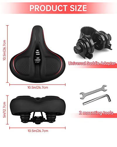 【Standard universale】 - Le dimensioni del sedile della bici sono 27 x 24 x 14 cm/11,02x6,69x5,51 pollici (L x L x A), peso 880 g, può funzionare su qualsiasi reggisella standard, come mountain bike, bici da strada, cyclette, city bike, spinning bike, bicicletta pieghevole ecc.