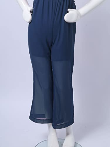 MSemis Tuta Bambina Eleganti da Cerimonia Chiffon Pantaloni Larghi Gamba Larga Ragazza Estate Monopezzi Tutine Jumpsuit Sera Cerimonia Festa Abito Tinta Unita Vacanza Navy_Blue 7-8 Anni