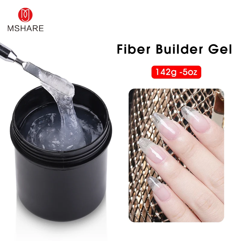 MSHARE Clear Pink Fiberglass UV Builder Gel for Nail Extensions Nails UV Quick Building 142g 5oz