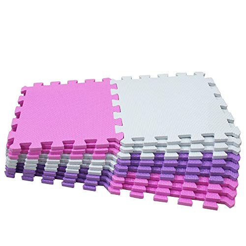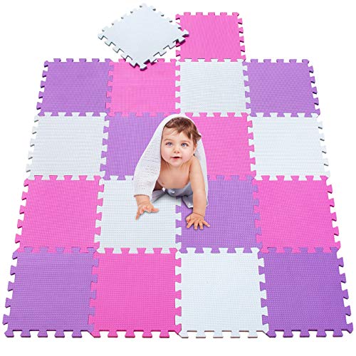 MSHEN Tappeto Puzzle con Certificato CE e Certificazione in Soffice Schiuma Eva | Tappeto da Gioco per Bambini | Tappetino Puzzle...dimensione1.62 mq,bianco-rosa-viola-010311g18