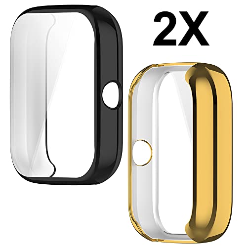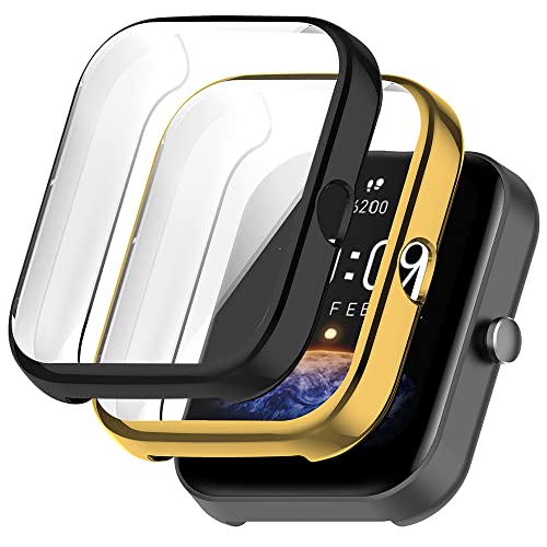 Msiall 2 pezzi Compatibile con custodia protettiva Amazfit Bip 3/3 pro, proteggi schermo flessibile in TPU a protezione totale, custodia protettiva proteggi schermo antigraffio-oro nero
