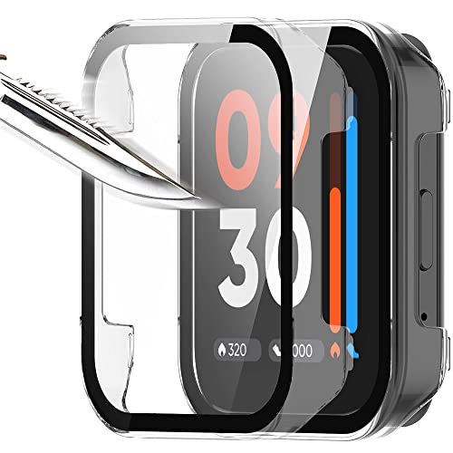 Msiall [2 pezzi] Transparent con Pellicola Protezione Schermo Vetro Temperato per realme watch 3, 9H Durezza PC Case,Bumper,Sottile Case Protettiva Completa per Smart realme watch 3