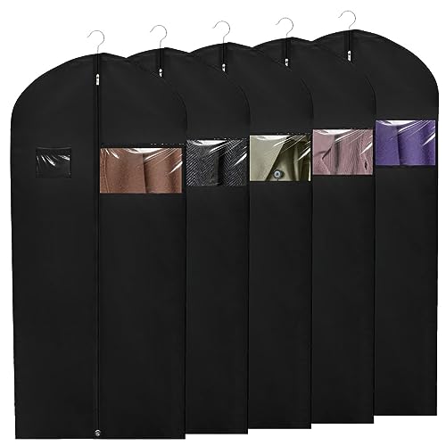 MSIHEY 5 Pezzi Custodia Porta Abiti, Copri Abiti Antipolvere Custodia Pieghevole Traspirante Copriabiti Con Cerniera, 60 x 130 cm per Copri Abiti Giacche Gonne Camicie e Altro (Nero)