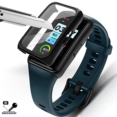 [Design perfetto]: custodia per PC molto resistente + vetro temperato con protezione per lo schermo, copre l'intera parte anteriore e i bordi curvi dell'huawei band 6, protegge da graffi, cadute e urti.