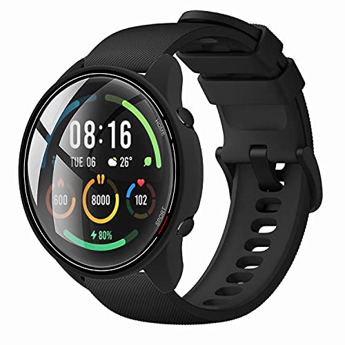 Msm-case Nero con Pellicola Protezione Schermo Vetro Temperato per Xiaomi Mi Watch, 9H Durezza PC Case,Bumper,Sottile Case Protettiva Completa per Smart Mi Watch