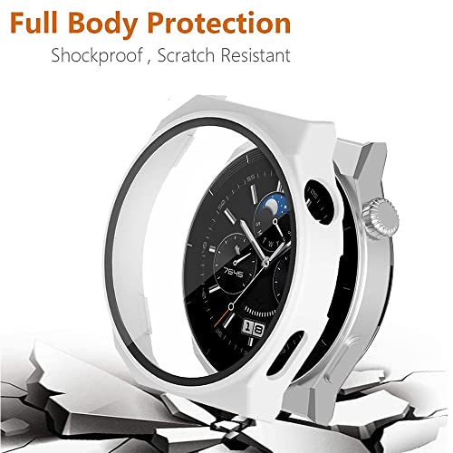 Msm-case [2 Pezzi] white con Pellicola Protezione Schermo Vetro Temperato per Huawei GT3 Pro 46mm, 9H Durezza PC Case,Bumper,Sottile Case Protettiva Completa per Huawei GT3 Pro 46mm