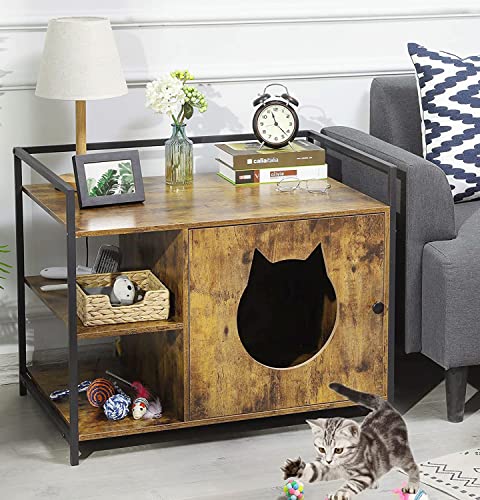 MSMASK Lettiera per gatti con scaffale e porta, per la ventilazione, per gatti grandi e piccoli, stabile, comodino (vintage)