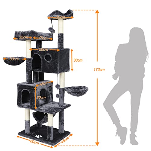 CURA OTTIMALE DEGLI ARTIGLI CON SISAL: I resistenti montanti in sisal della torre da gioco per gatti consentono la necessaria cura degli artigli e assicurano che i tuoi mobili siano risparmiati.