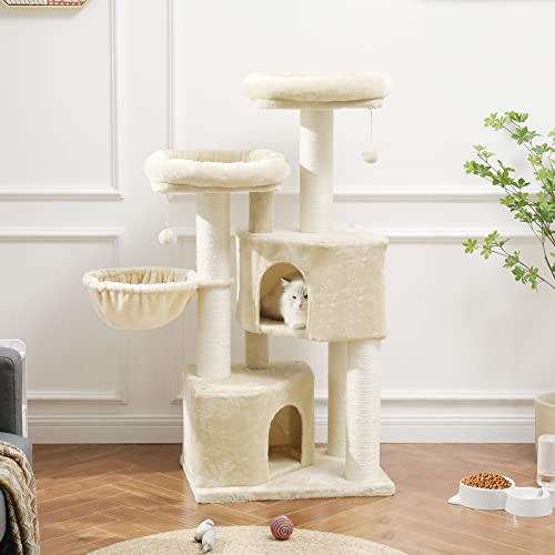 Zona di comfort per il vostro gatto con 2 grotte: l'eccellente dotazione di questo albero per gatti 2 piattaforme di osservazione, con 2 grotte e palline di peluche con campane, sia accogliente che giocoso, il tiragraffi è pieno di utilizzo in ogni umore del gatto. Tiragraffi incontra per gatti grandi, gattini, adulti e gatti disabili...
