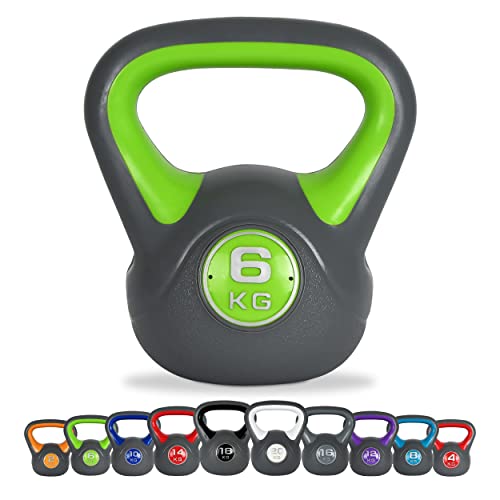 MSPORTS Kettlebell 2 - 20 kg con Poster di Esercizi (6 kg - Verde)