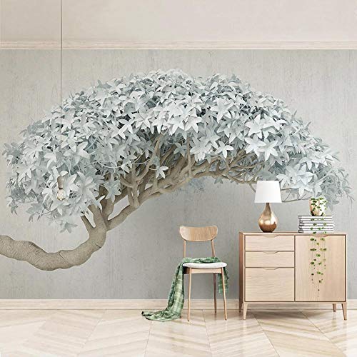 Msrahves Adesivi murali 3D Creativo bianco albero foglie 400X300CM Photo Carta da Parati murale decorazione Adesivi murali 3D Decorazione da Parete Carta da parati moderna 3D fotomurali Wallpaper