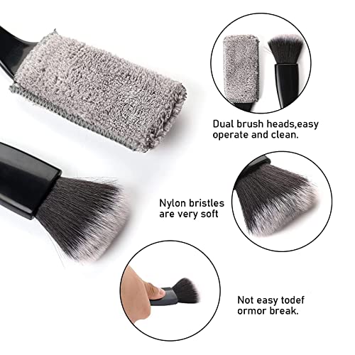 MsTeco Spazzola Lavaggio Auto,2 Pezzi Spazzola per Dettagl,Doppia Testa Morbidi,Cruscotto Pulizia Interni Esterno,Panni Kit Spazzole