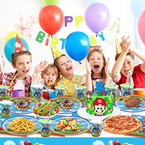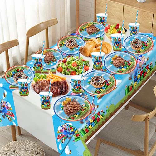 Mstnoixgc 73pcs Stoviglie Compleanno, Stoviglie per Feste di Compleanno, Servizio da Tavola per Feste, Piatti, Tazze,Tovaglia, Tovaglioli, Cannucce