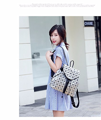 MSZYZ Doppia Tracolla Borsa PU Moda rombo Geometrico Zaino,argentea