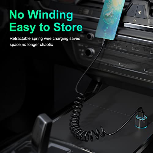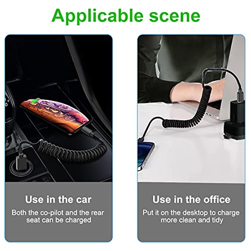 Cavo a spirale (non adatto per carplay): fornire la lunghezza razionale del filo a molla può facilitare la ricarica sul copilota o sul sedile posteriore. (lunghezza di trazione: 1,3 m - 4 piedi) Allungarlo finché vuoi.