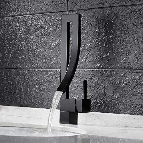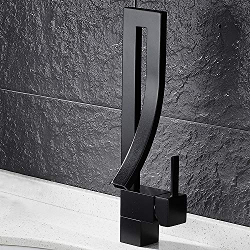 MTFun Rubinetto Bagno Lavabo Alto, Miscelatore Monoforo in Ottone, Design Moderno, Monocomando Regolazione Temperatura, Cromato Nero