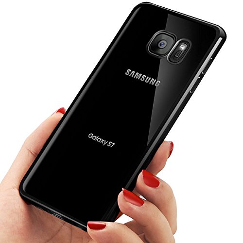 Mture Custodia Galaxy S7 Case Cover, Custodia Chiaro Cristallo, Placcatura TPU Bumper Case, Trasparente Silicone Case Galaxy S7, Anti-graffio Copertura Tacsa Caso per Samsung Galaxy S7 - Nero