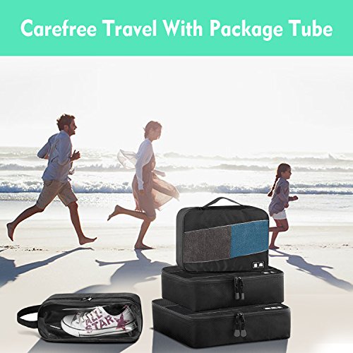 Mture Organizzatori Sistema di Cubo di Viaggio - 3 Cubi di Imballaggio+ 1 Borsa Scarpe Premium - Perfetto di Viaggio Dei Bagagli Organizzatore (NERO)